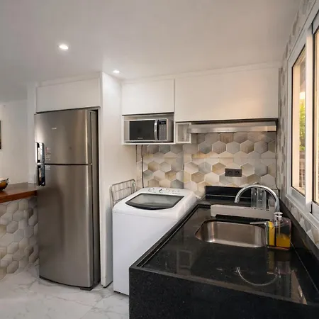 В числе удобств на оснащённой всем необходимым кухне есть электрочайник, холодильник и стеклянная посуда. За 42 минут можно доехать до аэропорта Гуарарапес.